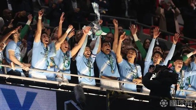 在英聯(lián)杯決賽中,曼城2-0戰(zhàn)勝阿森納,捧得英聯(lián)杯冠軍獎杯。