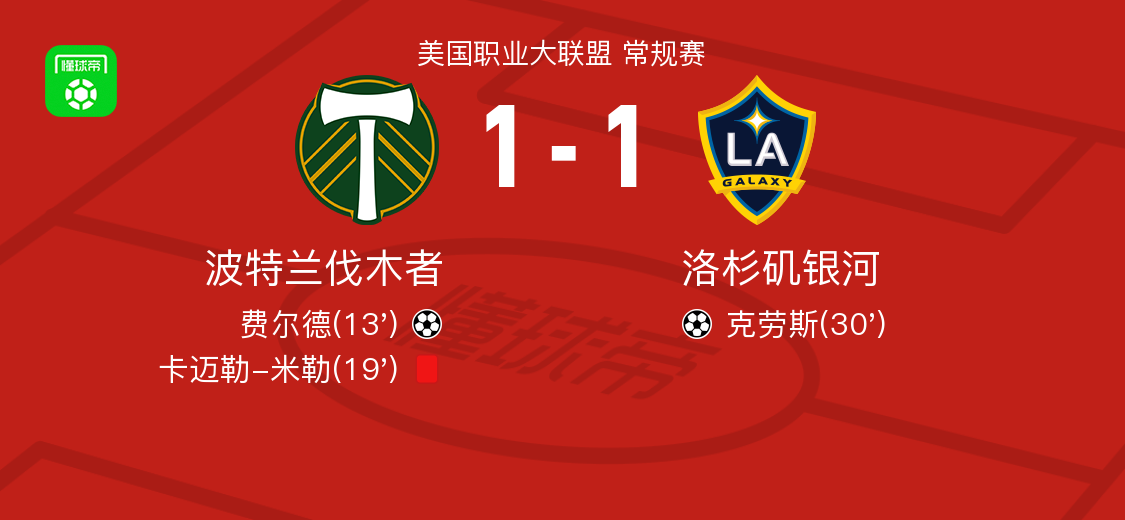 北京時間3月23日美國職業(yè)大聯(lián)盟 常規(guī)賽,波特蘭伐木者主場對陣洛杉磯銀河。波特蘭伐木者費爾德破門。洛杉磯銀河克勞斯破門。最終比分波特蘭伐木者 1-1 洛杉磯銀河。