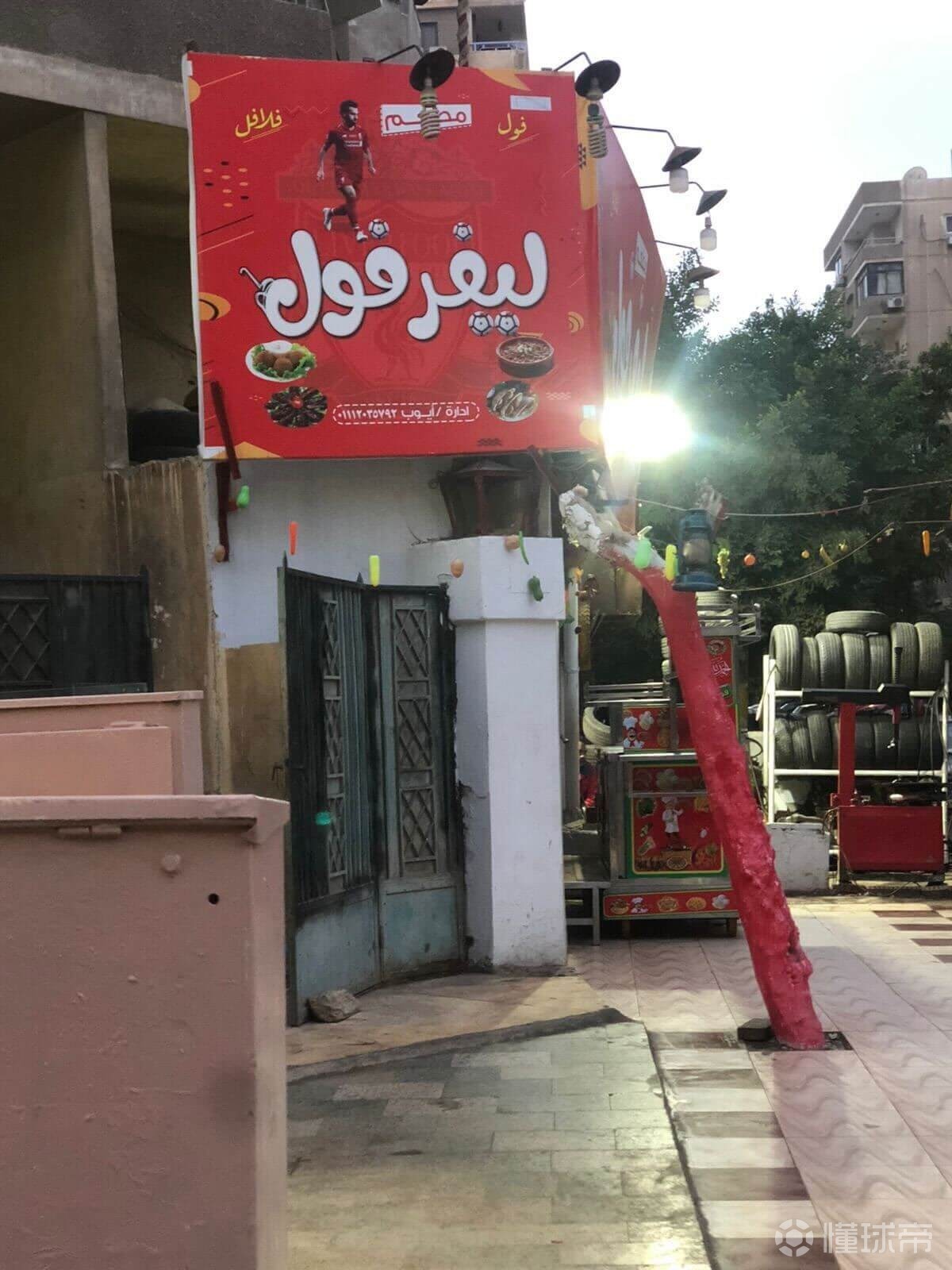 最能說明這一切的,是開羅納賽爾城一家售賣蠶豆泥和炸鷹嘴豆餅的小食店。這家店用阿拉伯語取名為“Liverfool”,巧妙融合了利物浦隊名與自家菜品,店招最上方便是薩拉赫的照片。