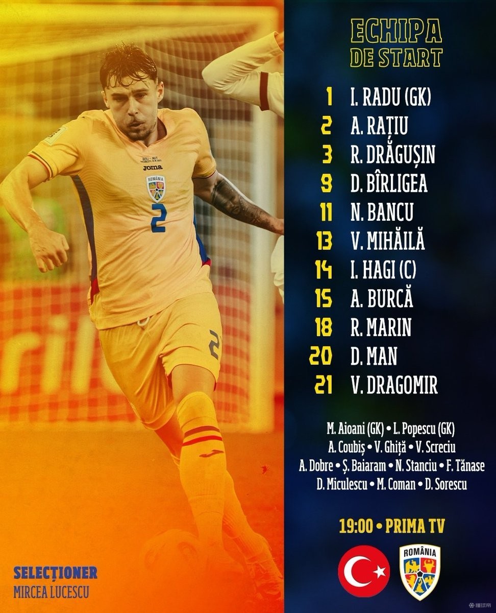 北京時(shí)間3月27日凌晨01:00,世界杯歐洲區(qū)預(yù)選賽附加賽半決賽首回合,土耳其將迎戰(zhàn)羅馬尼亞,賽前,雙方的首發(fā)陣容已經(jīng)公布。