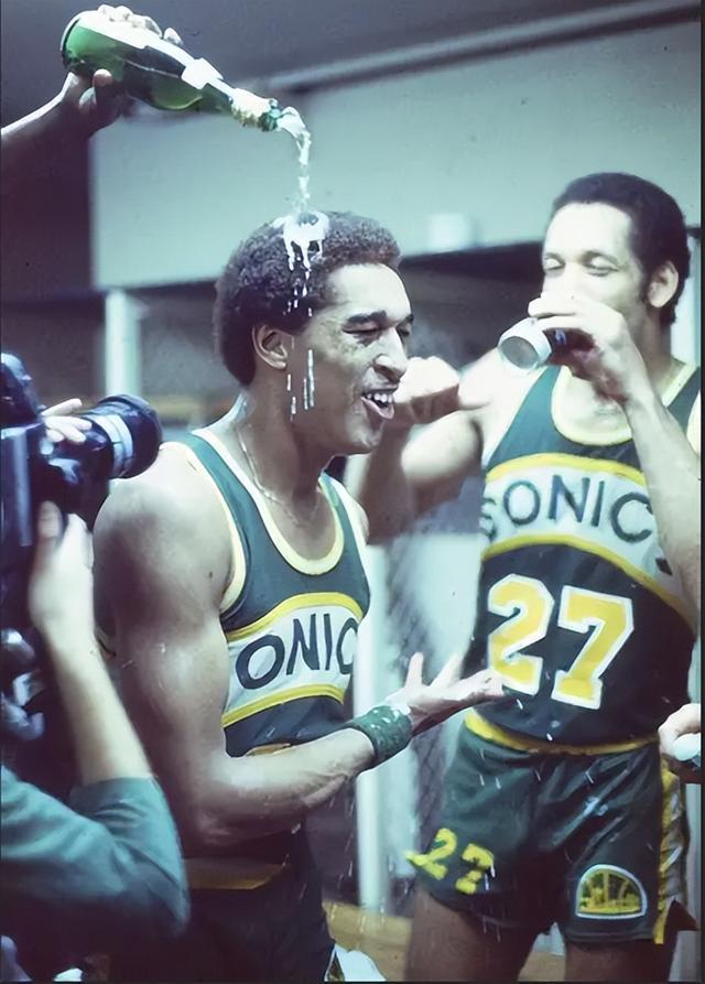 1978-79賽季,由杰克-西克馬和丹尼斯-約翰遜統(tǒng)領(lǐng)的超音速卷土重來,又在總決賽中遇到子彈,這回是4-1獲勝。超音速獲得隊史上唯一的總冠軍。約翰遜當(dāng)選總決賽MVP。