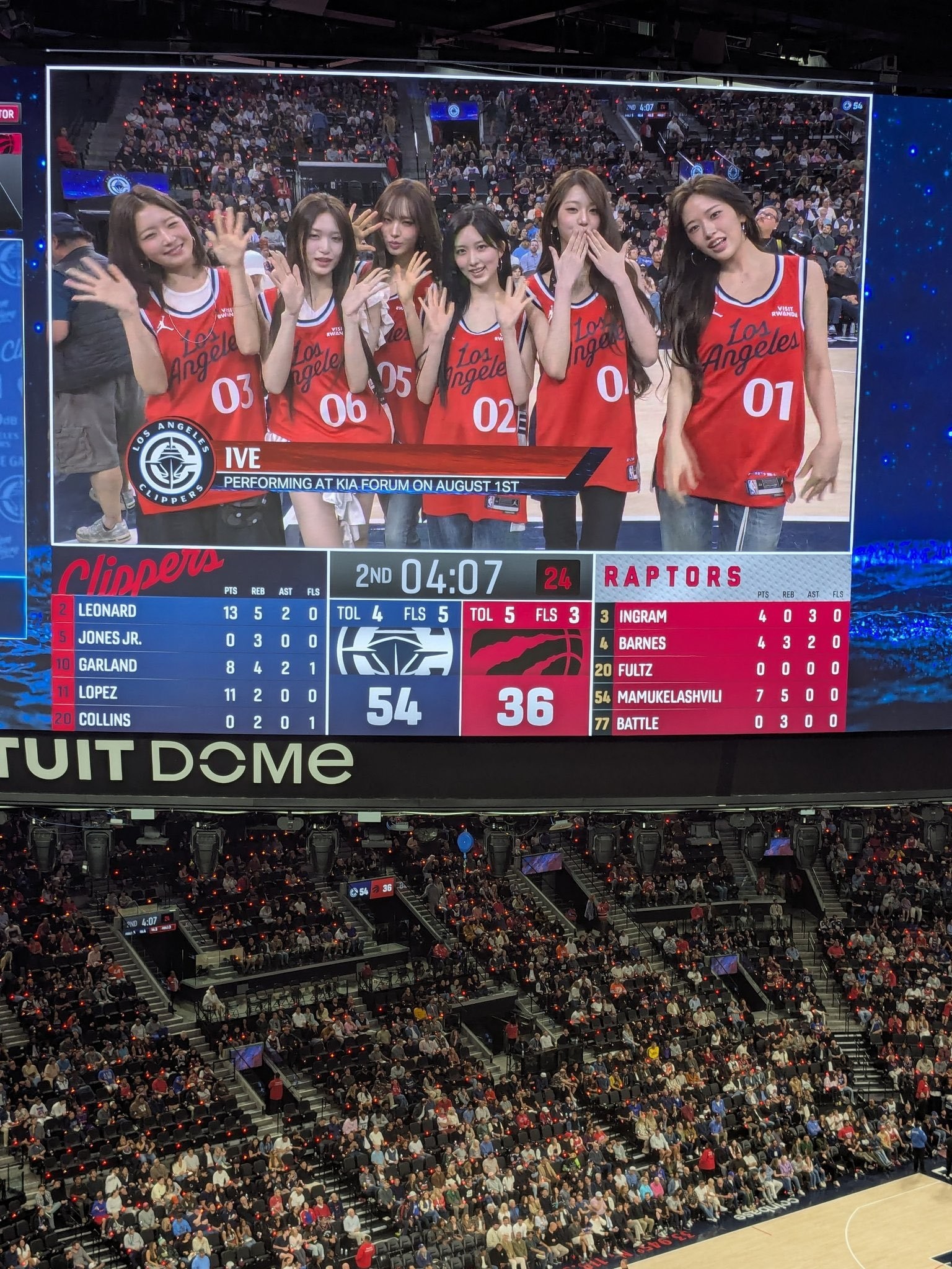 北京時間3月26日,快船在主場戰(zhàn)勝猛龍。本場比賽,韓國女團IVE受邀前往現(xiàn)場觀賽。