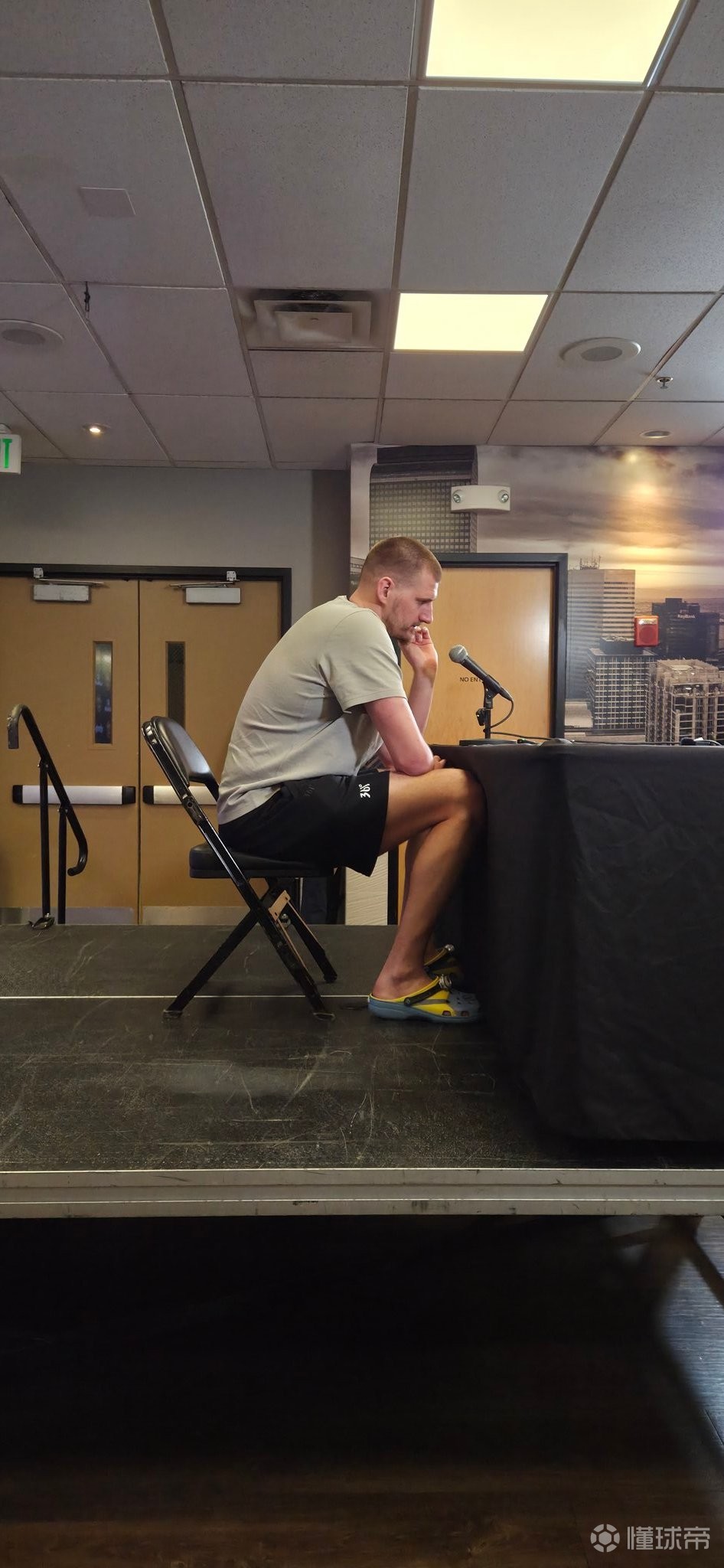 賽后,約基奇出席了新聞發(fā)布會(huì)。據(jù)掘金攝影記者RyanGreene報(bào)道,約基奇在出席發(fā)布會(huì)時(shí)展現(xiàn)了其內(nèi)心可愛的一面,球員腳踏小黃人系列洞洞鞋接受采訪。