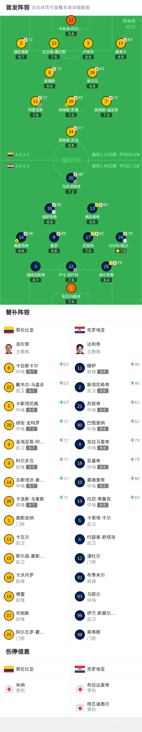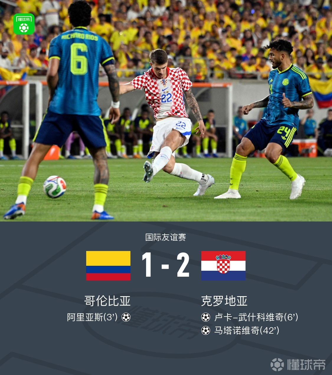 北京時(shí)間3月27日國(guó)際友誼賽,哥倫比亞對(duì)陣克羅地亞。哥倫比亞阿里亞斯破門(mén)??肆_地亞盧卡-武什科維奇破門(mén),馬塔諾維奇破門(mén)。最終比分哥倫比亞 1-2 克羅地亞。