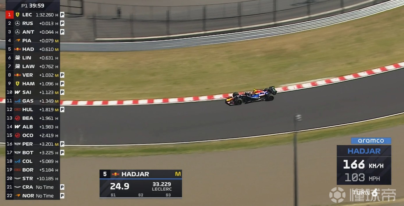 一練還剩40分鐘左右,勒克萊爾暫時(shí)排名場上第一。