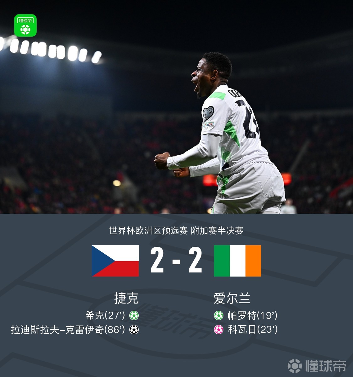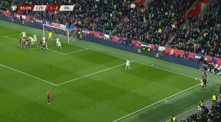 第86分鐘,薩迪萊克角球開出,克雷伊奇頭球破門扳平,捷克2-2愛爾蘭