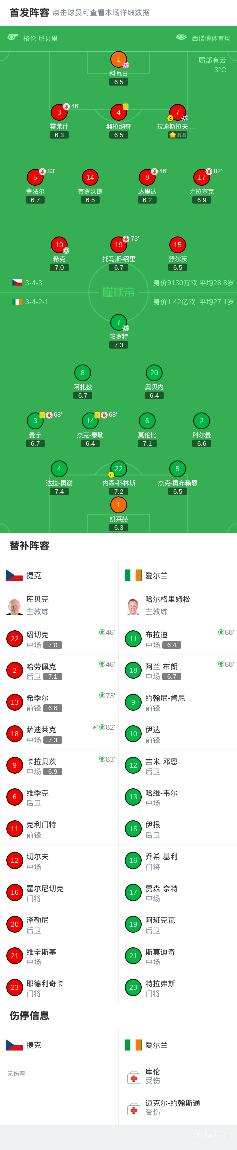 第27分鐘,克雷伊奇造點(diǎn),??酥髁P點(diǎn)球命中,捷克1-2愛爾蘭
