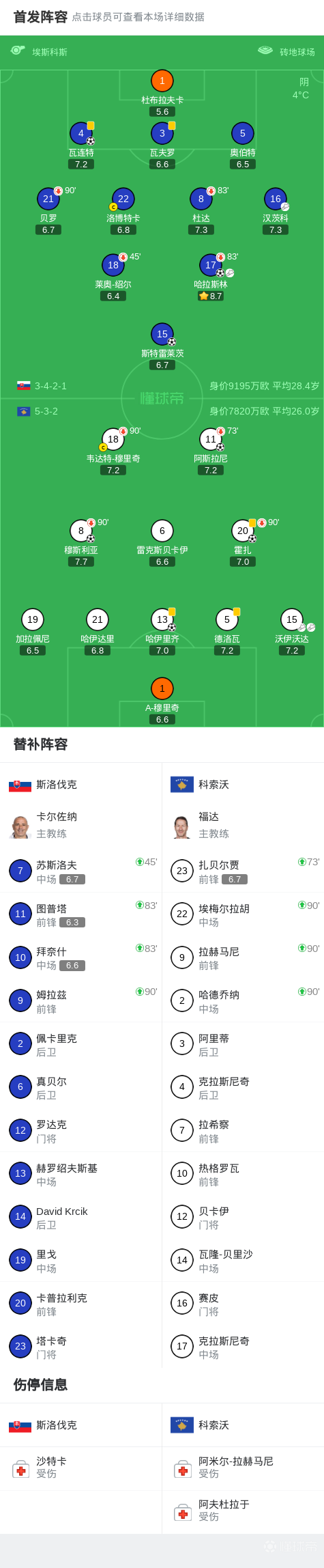第45分鐘,哈拉斯林任意球直接破門(mén),再將比分超出,斯洛伐克2-1科索沃