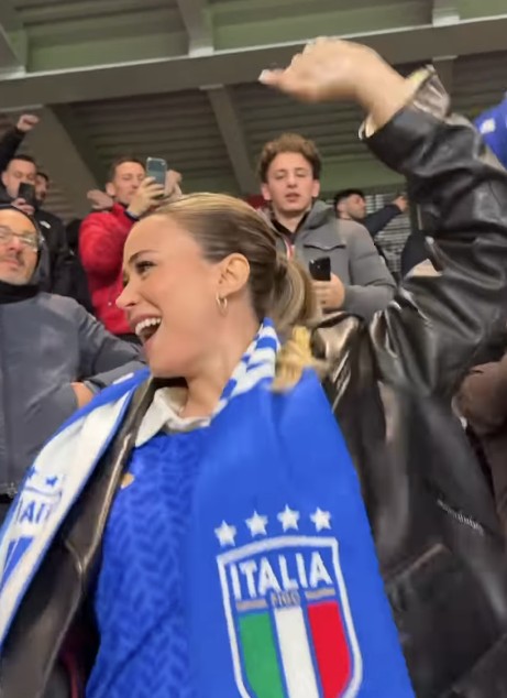 迪萊塔-萊奧塔現(xiàn)場(chǎng)觀看了意大利2-0北愛(ài)爾蘭的這場(chǎng)比賽,當(dāng)意大利進(jìn)球時(shí),正在孕期中的她也情不自禁地跳起慶祝,并與身邊的人擊掌。
