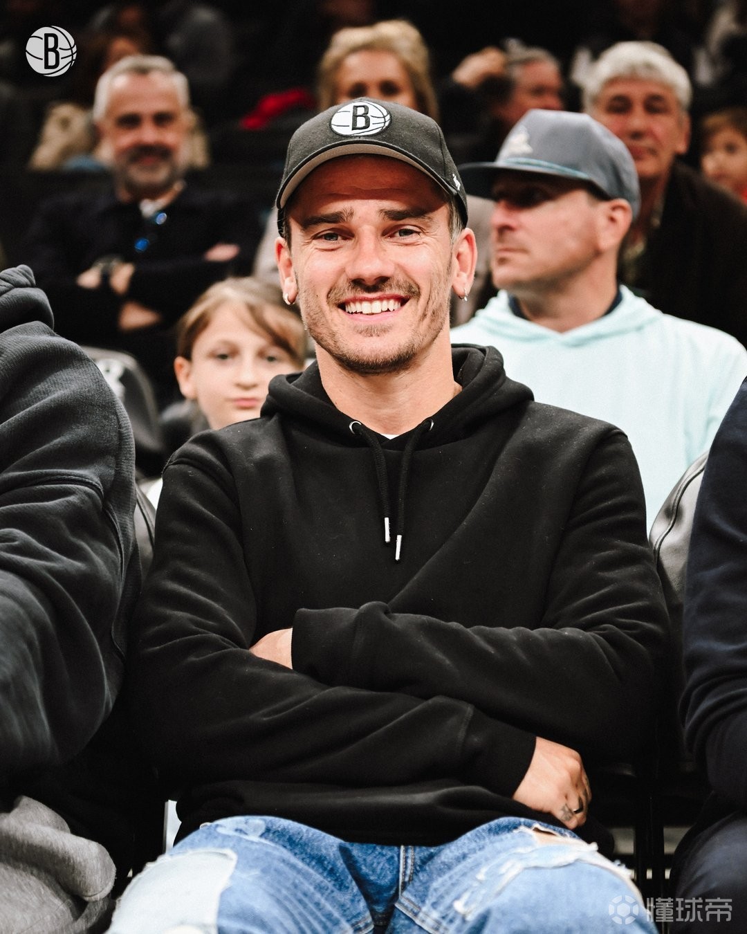本場(chǎng)比賽,現(xiàn)馬競(jìng)前鋒、下賽季將征戰(zhàn)美職聯(lián)的格列茲曼來(lái)到籃網(wǎng)主場(chǎng)進(jìn)行觀賽,他身著黑色衛(wèi)衣藍(lán)色牛仔褲的休閑裝扮,帶著印有籃網(wǎng)隊(duì)徽的鴨舌帽。