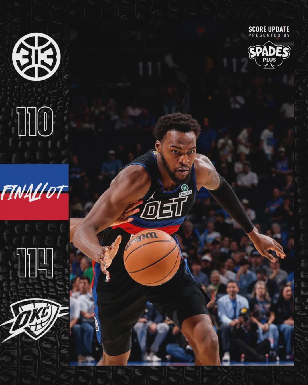 北京時間3月31日,NBA常規(guī)賽:西部第一的雷霆114-110加時擊敗東部第一的活塞??矊幇埠徒軅?杜倫兩大核心缺陣,活塞拼到了最后一刻。此役過后,雷霆60勝16負領(lǐng)先馬刺2.5個勝場,成為本賽季第一支拿到60勝的球隊。