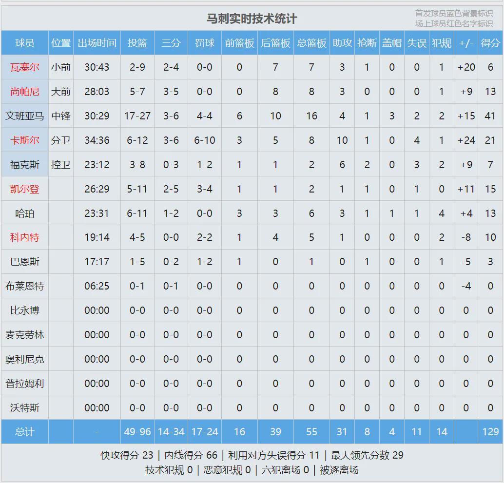 今天另外一場:馬刺129-114擊敗公牛豪取9連勝,馬刺57勝18負穩(wěn)居聯(lián)盟第二。文班僅用8分40秒拿到兩雙,NBA歷史最快紀錄。全場比賽,文班亞馬出戰(zhàn)30分29秒,投籃27中17,三分6中3,罰球4中4,狂砍41分16板4助3帽。