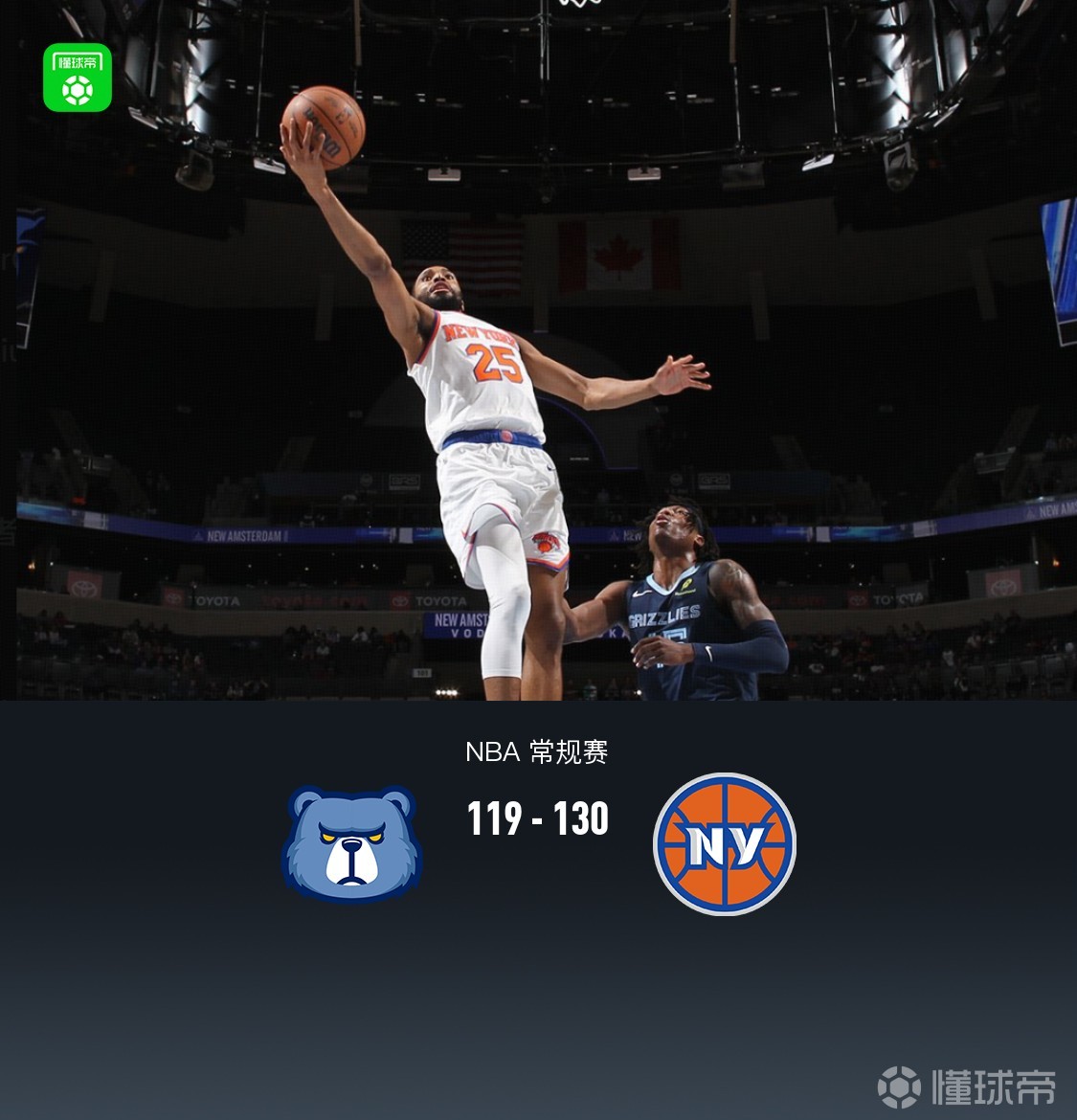 孟菲斯灰熊GG-杰克遜20分3板4助,普羅斯珀17分4板1助;紐約尼克斯OG-阿奴諾比25分13板3助,米卡爾-布里奇斯24分2板1助。