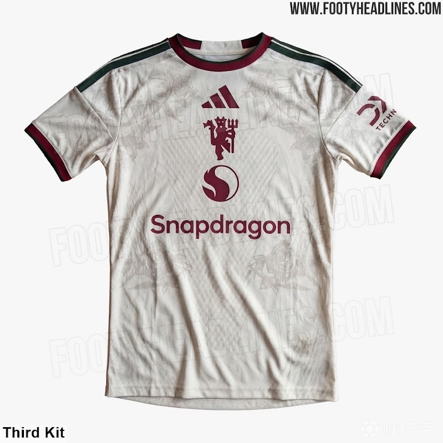 4月5日,知名足球裝備網(wǎng)站Footy Headlines泄露了曼聯(lián)2026-27賽季第三球衣,這件球衣的設計靈感源自蘭開夏玫瑰,這是俱樂部的標志性象征。