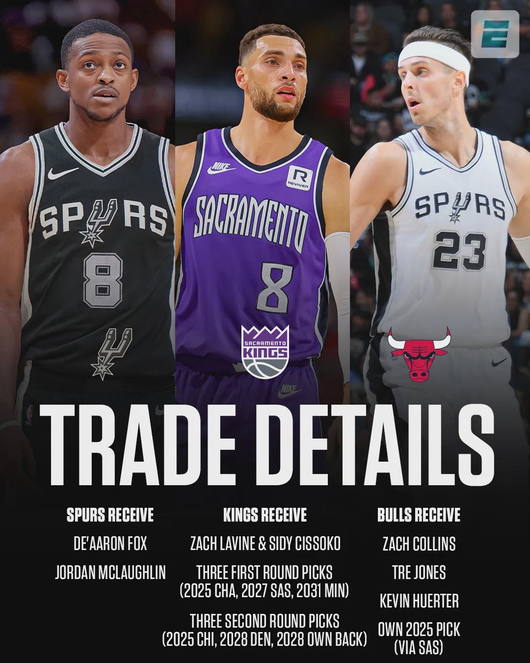 今年交易截止日前,國(guó)王隊(duì)曾公開(kāi)兜售拉文,可惜沒(méi)能幫他找到下家。2025年2月,公牛、馬刺和國(guó)王達(dá)成三方交易:國(guó)王送走??怂购驮S爾特,得到拉文、西索科、3個(gè)首輪和3個(gè)次輪簽。公牛自己都沒(méi)想到,成功清理拉文的大合同。
