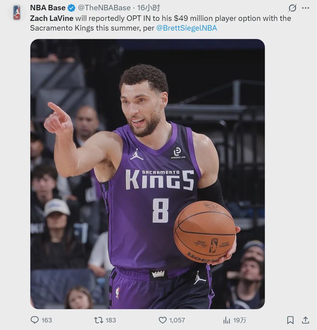 據(jù)NBA記者M(jìn)ichael Scotto和Brett Siegel報(bào)道,扎克-拉文將執(zhí)行2026-27賽季價(jià)值4900萬(wàn)美元的球員選項(xiàng)。今年夏天,國(guó)王隊(duì)會(huì)繼續(xù)兜售拉文。此外,小薩博尼斯、德羅贊和蒙克也是交易對(duì)象。年薪近5000萬(wàn)美元,拉文怎么可能放棄?