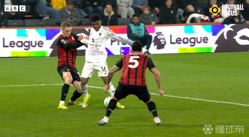 當(dāng)時(shí)阿馬德在罰球區(qū)內(nèi)倒地,此前伯恩茅斯后衛(wèi)阿德里安·特呂費(fèi)爾似乎用雙手接觸了他。裁判員斯圖爾特·阿特維爾拒絕判罰點(diǎn)球。