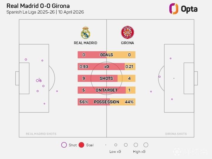 此役主場對(duì)陣赫羅納,皇家馬德里在上半場完成9次射門,其中5次射正,但未能轉(zhuǎn)化為進(jìn)球。