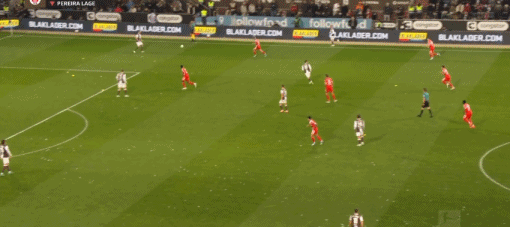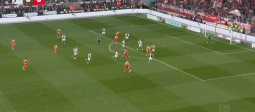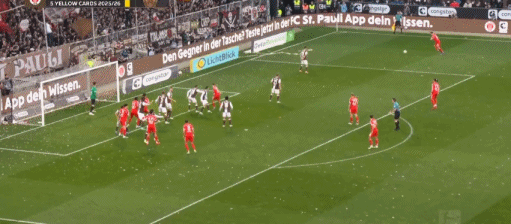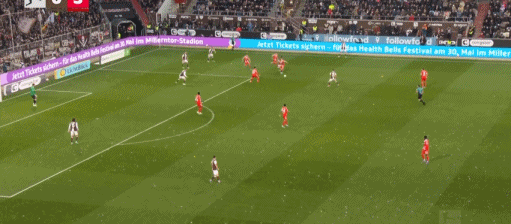 第53分鐘,拜仁前場(chǎng)右路任意球機(jī)會(huì),基米希將球罰向禁區(qū),格雷茨卡后點(diǎn)凌空射門打進(jìn),拜仁2-0圣保利。