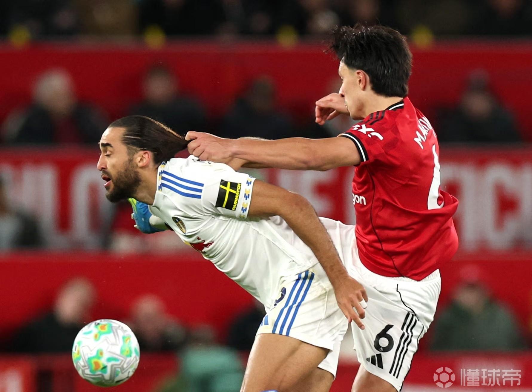 后防線缺少馬奎爾的制空能力與領(lǐng)導(dǎo)力,不停地被利茲聯(lián)的邊路傳中折磨。反而在利馬被罰下后,曼聯(lián)才如夢(mèng)初醒,太晚了。