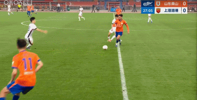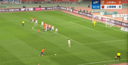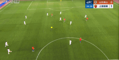 第37分鐘,李帥下底傳中,楊希門前推射打進(jìn)中超處子球,海港1-0領(lǐng)先山東!