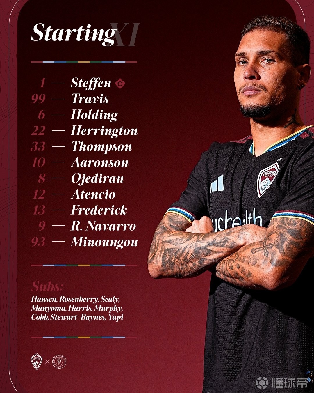 科羅拉多急流首發(fā):1-斯特芬、6-霍爾丁、8-奧耶迪蘭、9-拉斐爾-納瓦羅、10-帕克斯頓-阿倫森、12-阿滕西奧、13-韋恩-弗雷德里克、22-盧卡斯-赫林頓、33-科西-湯普森、93-米農(nóng)古、99-特拉維斯
