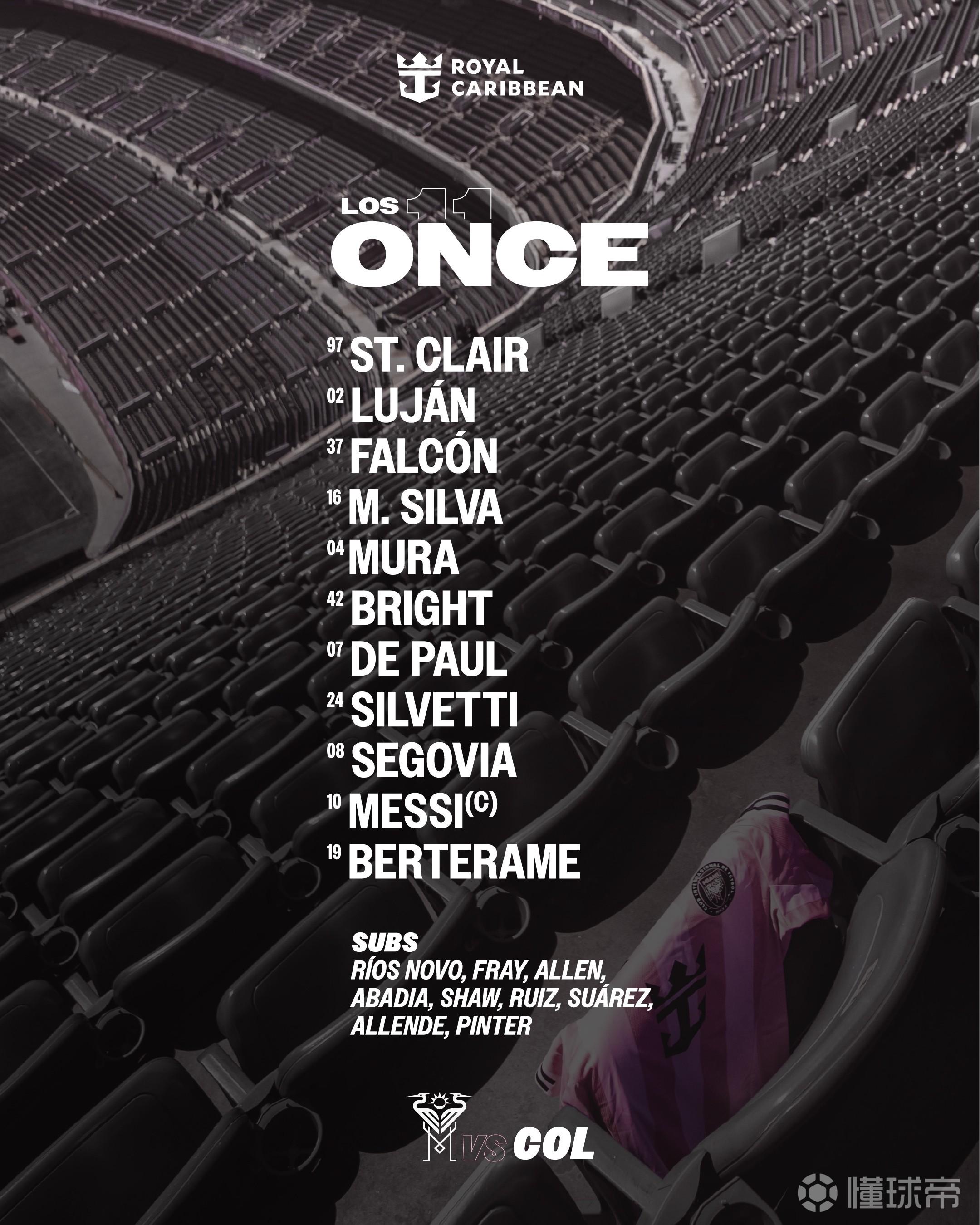 邁阿密國際首發(fā):2-貢薩洛-盧漢、4-穆拉、7-德保羅、8-塞戈維亞、10-梅西、16-米卡埃爾、19-貝爾泰拉梅、24-馬特奧-西爾維蒂、37-法爾孔、42-揚尼克-布賴特、97-圣克萊爾