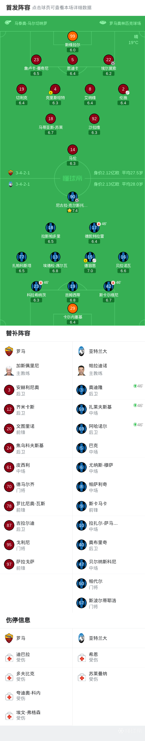 北京時間4月19日意大利足球頂級聯(lián)賽第33輪,羅馬主場對陣亞特蘭大。上半場克爾斯托維奇首開記錄,半場結(jié)束前埃爾莫索扳平比分。最終比分羅馬 1-1 亞特蘭大。