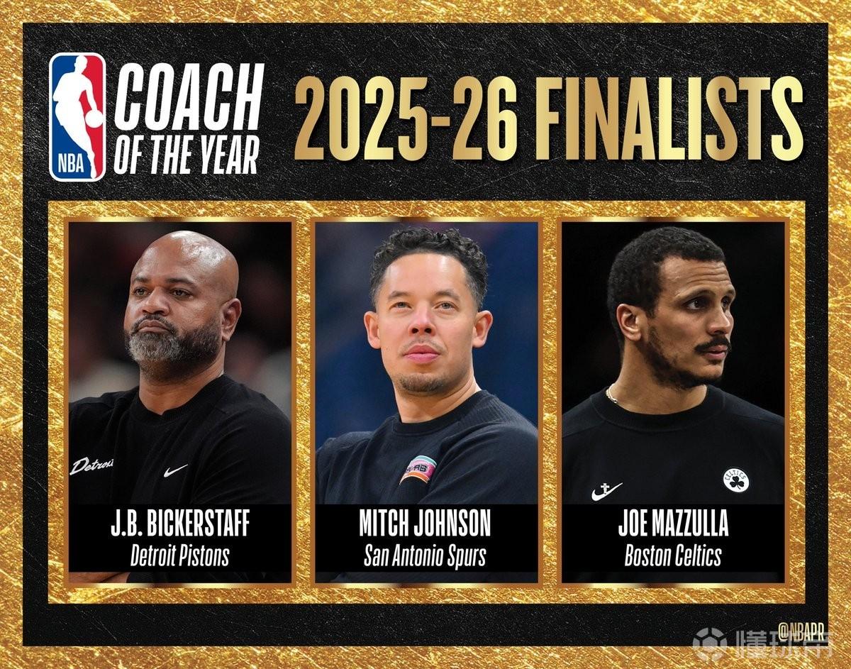 北京時(shí)間4月20日,NBA官方宣布,活塞主帥JB-比克斯塔夫、馬刺主帥米奇-約翰遜以及凱爾特人主帥喬-馬祖拉進(jìn)入本賽季年度最佳教練的最終候選名單。