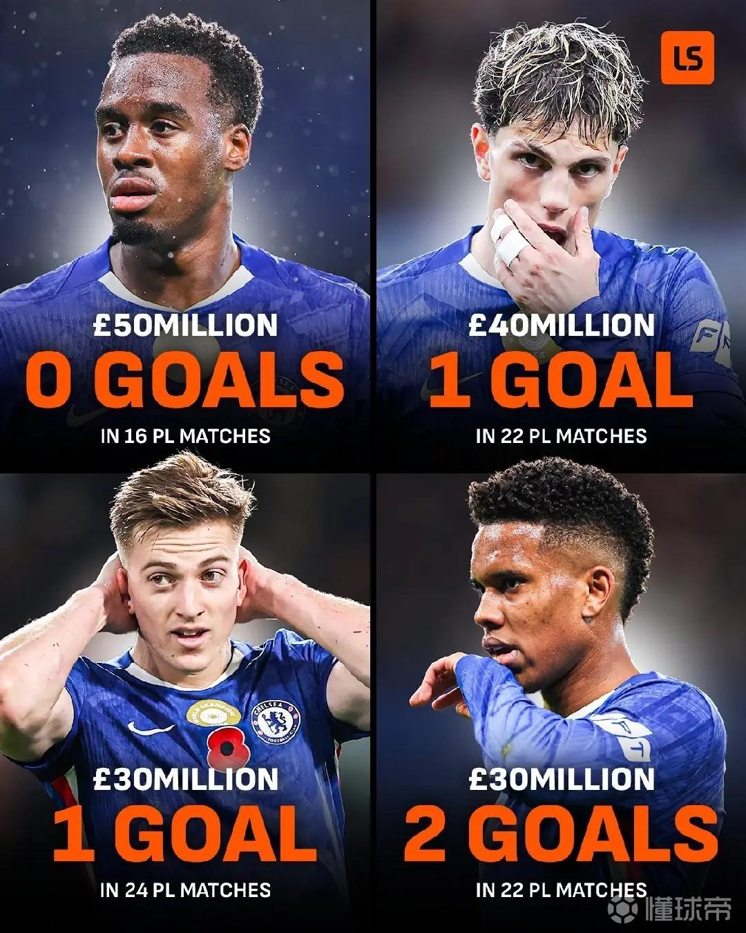 據(jù)統(tǒng)計,切爾西去年夏窗到隊的四名前鋒吉滕斯、加納喬、德拉普和埃斯特旺一共只打入了4粒聯(lián)賽進球,效率堪憂。