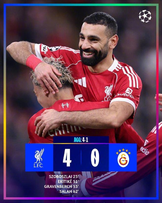 這場4-0的大勝也是利物浦全隊(duì)?wèi)?zhàn)術(shù)與默契的完美體現(xiàn),麥卡利斯特坐鎮(zhèn)中場,調(diào)度精準(zhǔn),不僅策劃了首粒進(jìn)球,還多次送出精妙直塞,成為球隊(duì)的中場大腦。范戴克領(lǐng)銜的后防線固若金湯,全場僅讓加拉塔薩雷獲得2次射正機(jī)會(huì),用零封為逆轉(zhuǎn)保駕護(hù)航;埃基蒂克、格拉芬貝赫的進(jìn)球,則展現(xiàn)了球隊(duì)鋒線的多點(diǎn)開花能力。