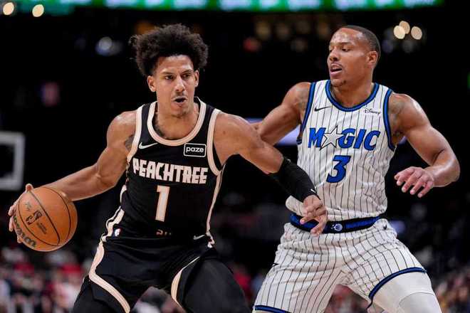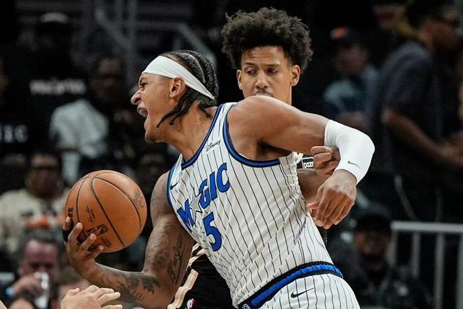 老鷹過(guò)去9場(chǎng)豪取9連勝,魔術(shù)過(guò)去7場(chǎng)豪取7連勝,本賽季前兩次交鋒老鷹均戰(zhàn)勝魔術(shù)。本場(chǎng)魔術(shù)缺少艾薩克、佈萊克與小瓦格納,老鷹迎來(lái)庫(kù)明加復(fù)出。首節(jié)開(kāi)局老鷹5-7落後,老鷹立即打出一波11-0攻勢(shì)反超,魔術(shù)內(nèi)外開(kāi)花回敬一波13-3攻勢(shì)追到僅差1分。傑倫與班凱羅各得2分,沃克攻傳結(jié)合引領(lǐng)一波13-2攻勢(shì)拉開(kāi)比分,首節(jié)比賽結(jié)束老鷹34-21領(lǐng)先魔術(shù),沃克3記三分得到14+3+2。