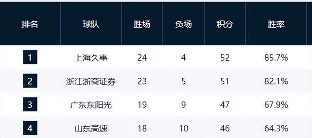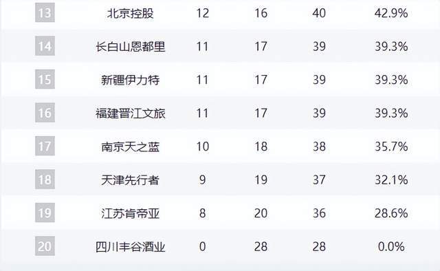 福建、同曦、天津、江蘇等隊(duì)仍在為最後一線生機(jī)拼殺,而四川隊(duì)至今未嘗勝績,0勝28負(fù)墊底,賽季已無懸念。