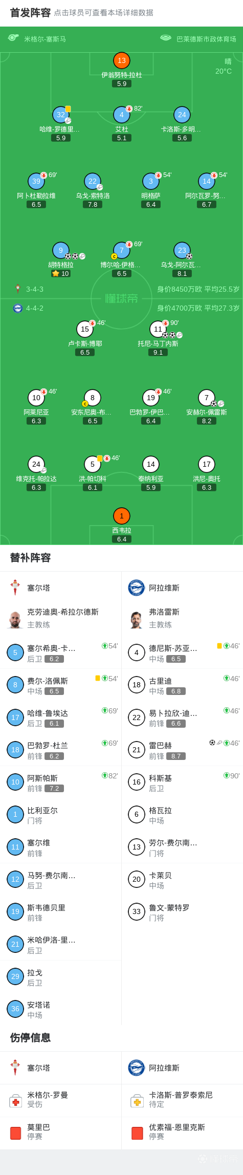 第19分鐘,塞爾塔球員哈維-羅德里格斯助攻胡特格拉打入一球。
