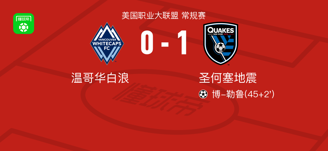 北京時(shí)間3月22日美國職業(yè)大聯(lián)盟 常規(guī)賽,溫哥華白浪主場對(duì)陣圣何塞地震。圣何塞地震博-勒魯破門。最終比分溫哥華白浪 0-1 圣何塞地震。