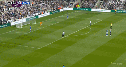 第10分鐘,奧尼安出球失誤,安東尼-戈登得球冷靜擺脫破門,紐卡1-0!