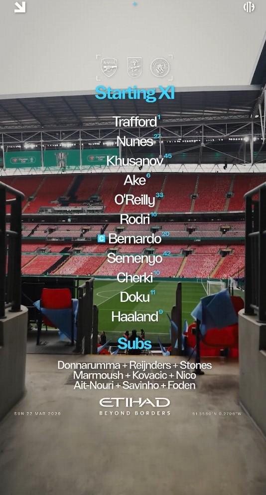替補(bǔ):25-多納魯馬、4-賴因德斯、5-斯通斯、7-馬爾穆什、8-科瓦契奇、14-尼科-岡薩雷斯、21-努裡、26-薩維尼奧、47-福登