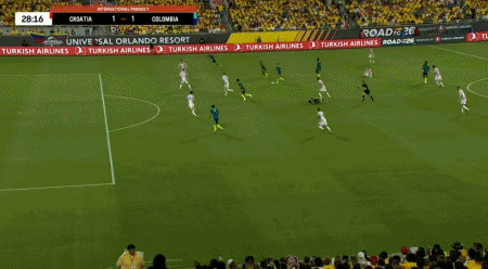 第6分鐘,武什科維奇外圍遠(yuǎn)射破門(mén)扳平比分,克羅地亞1-1哥倫比亞