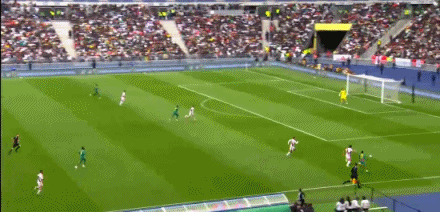第31分鐘,卡馬拉禁區(qū)外起腳遠(yuǎn)射,皮球高出球門