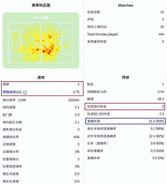 要知道他的預(yù)期進(jìn)球才0.75,不得不說,貝爾納爾在門前是真的有點(diǎn)東西。