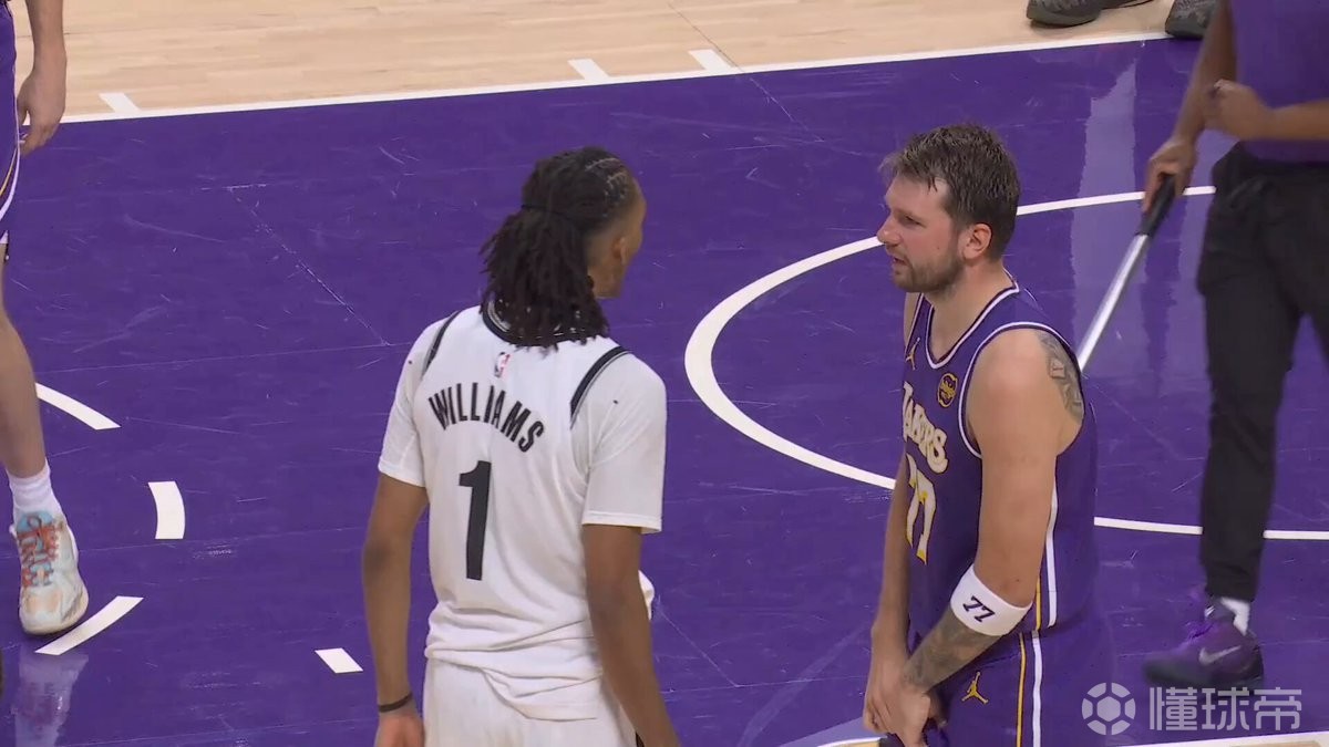 比賽進(jìn)行到第三節(jié)還剩5分12秒時,湖人球星盧卡-東契奇和籃網(wǎng)球員扎伊爾-威廉姆斯爆發(fā)摩擦出現(xiàn)推搡,裁判分別給兩人一個技術(shù)犯規(guī)。