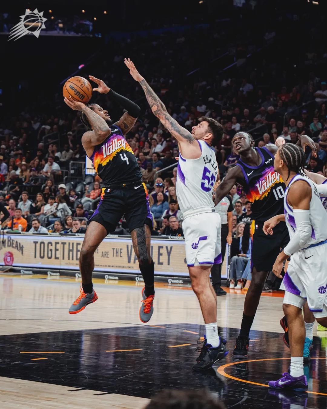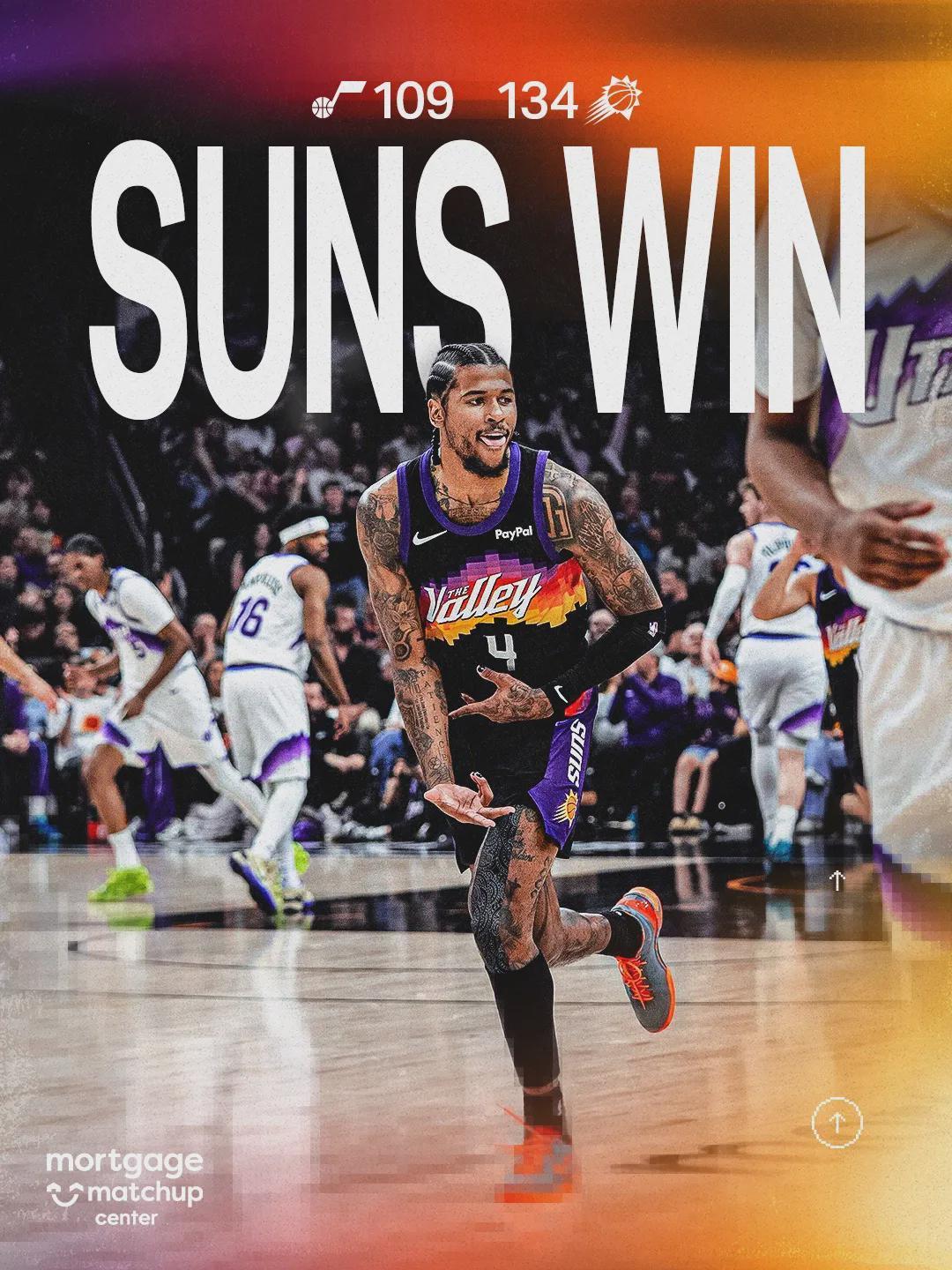 目前太陽41勝33負排名西部第7,落后第6的火箭3.5個勝場,領先第8的快船3個勝場。太陽大概率要打附加賽,你覺得他們能頂?shù)米】齑瑔幔?/p>