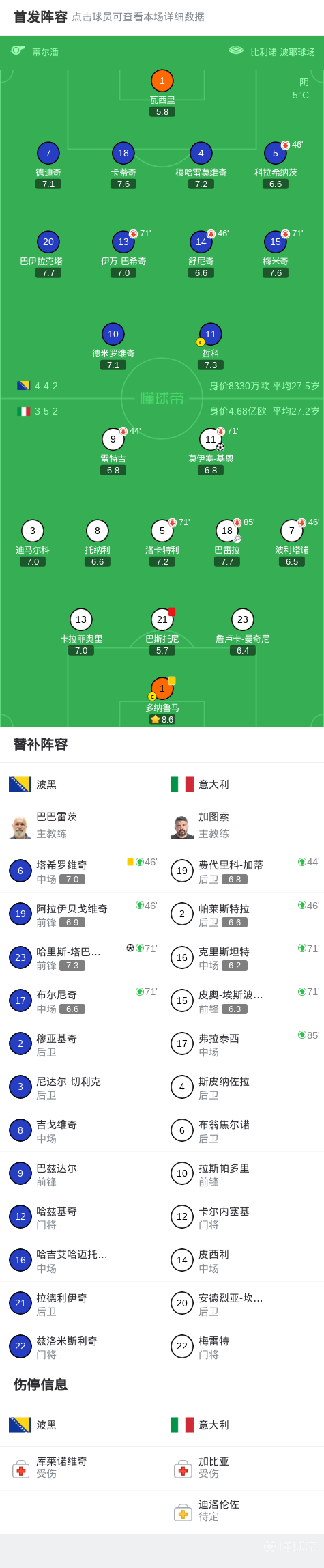 第66分鐘,波黑完成20腳射門,射門數(shù)20-3領(lǐng)先意大利