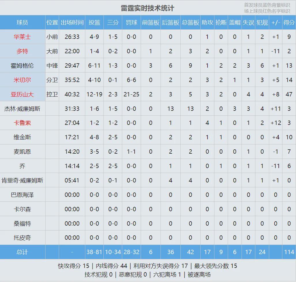 亞歷山大25次罰球,雷霆全隊32次罰球,活塞全隊只有23次罰球?;钊鹘叹毐瓤怂顾蛸惡笳f:“我們今晚打了一場精彩的比賽,我不會讓判罰掩蓋隊員今晚的努力?!鄙弦粓隼做蚰峥怂?,賽后尼克斯主帥邁克-布朗不滿雷霆造犯規(guī)。