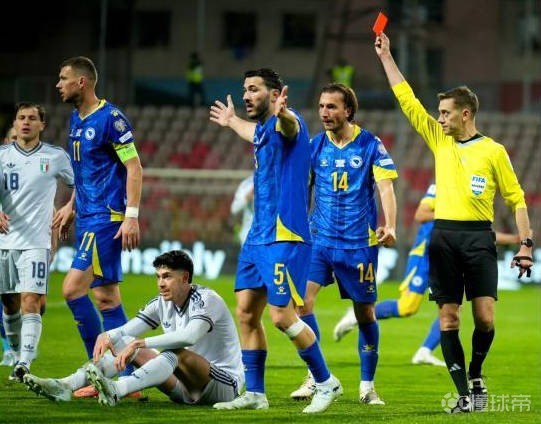據(jù)報(bào)道,在與波黑的附加賽決勝局中,意大利在點(diǎn)球大戰(zhàn)中失利,連續(xù)第三次無緣世界杯,巴斯托尼在第41分鐘因?qū)γ访灼娴姆敢?guī)被直接紅牌罰下,使得他的球隊(duì)在整個(gè)下半場(chǎng)和加時(shí)賽中都少一人。