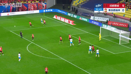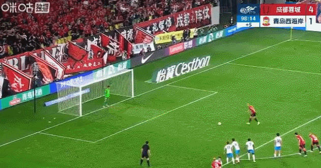 傷停補時第7分鐘,青島西海岸球員禁區(qū)內(nèi)手球,成都蓉城獲得點球,費利佩點球命中,生日夜上演帽子戲法!