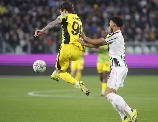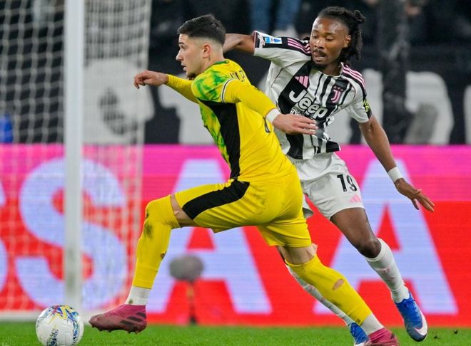 比賽剛剛開始不久,尤文圖斯就創(chuàng)造出非常好的機(jī)會(huì)。洛卡特利在禁區(qū)內(nèi)搶點(diǎn)頭球攻門,皮球彈地後飛向球門。門將反應(yīng)很快把球撲出。第14分鐘,尤文圖斯進(jìn)球瞭!孔塞桑在禁區(qū)右側(cè)送出橫傳。伊爾迪茲直接低射。皮球鉆入球門右下角!這腳射門角度刁鉆,門將落地?fù)渚纫呀?jīng)來不及瞭!尤文圖斯取得領(lǐng)先。3分鐘後,圖拉姆外圍嘗試一腳遠(yuǎn)射,被撲瞭出去。