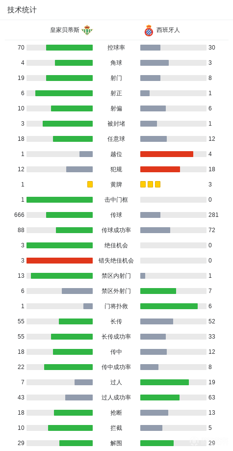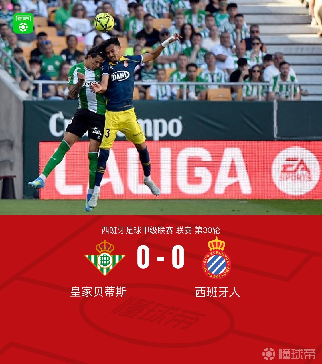 北京時間4月5日西班牙足球甲級聯(lián)賽第30輪,皇家貝蒂斯主場對陣西班牙人。下半場巴勃羅-加西亞禁區(qū)打門擊中橫梁,雙方未能把握機會取得進球。最終比分皇家貝蒂斯 0-0 西班牙人。