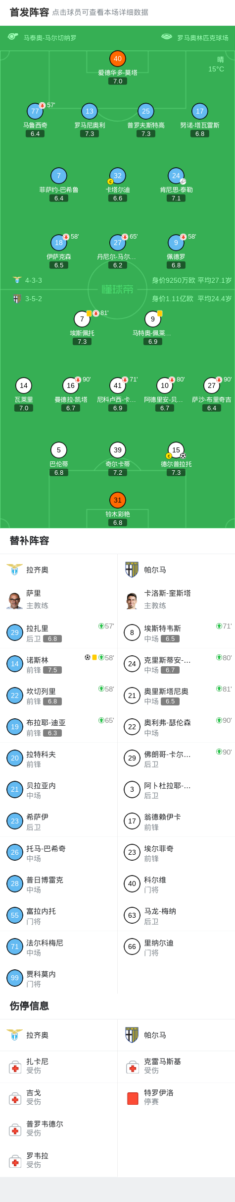 北京時(shí)間4月5日意大利足球頂級(jí)聯(lián)賽 聯(lián)賽 第31輪,拉齊奧主場(chǎng)對(duì)陣帕爾馬。拉齊奧諾斯林破門。帕爾馬德?tīng)柶绽衅崎T。最終比分拉齊奧 1-1 帕爾馬。