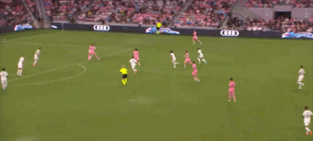 第90+2分鐘,梅西凌空抽射,門將倒地將球撲出